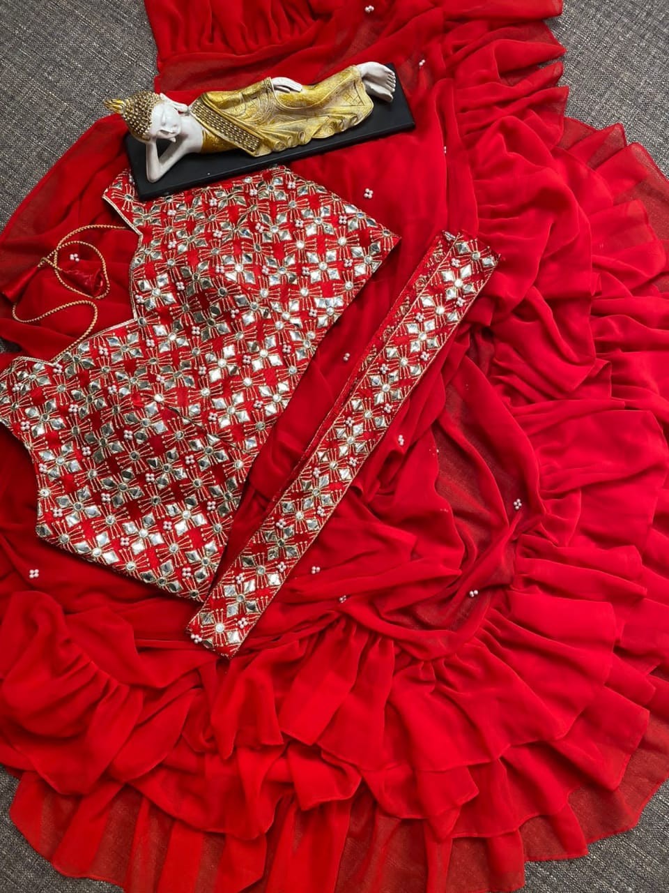 *SAREE* : FAUX GEORGETTE SAREE WITH MOTI WORK