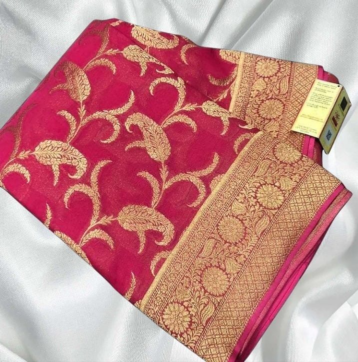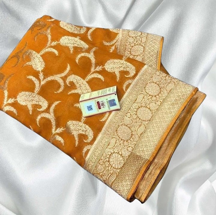 *Banarasi Semi.goergettes daibal silk soft jaldar kairy buti alman watar zari fancy border fancy Colors full body 2day fancy saree contrast rich pallu*