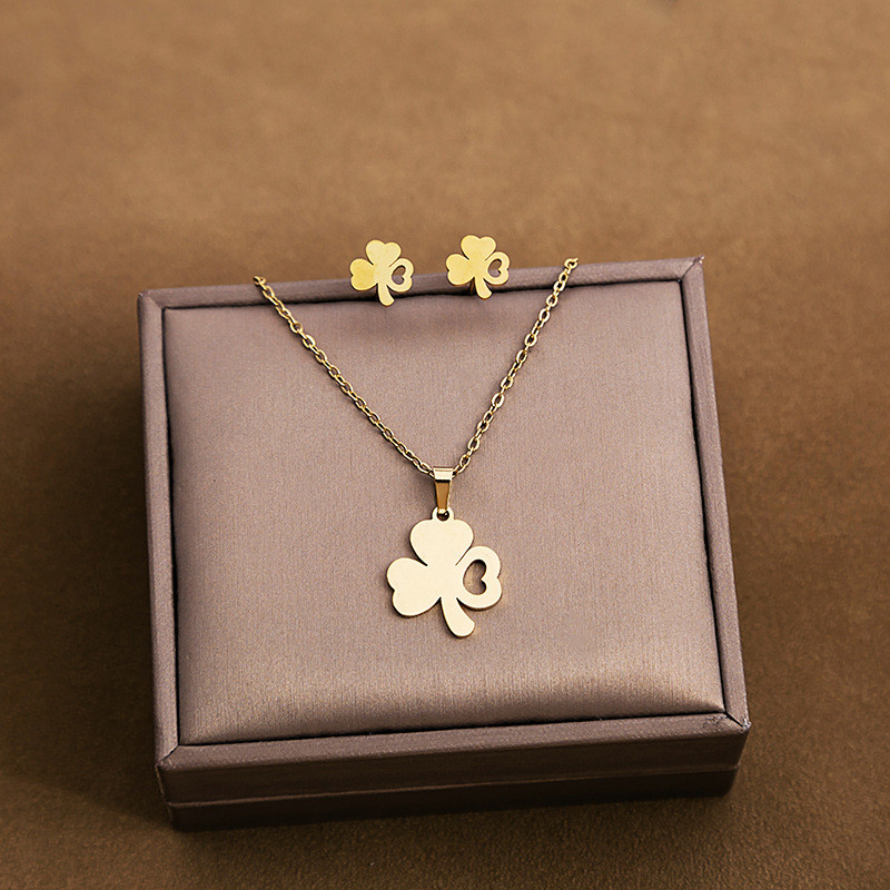 Fashion Jewelry Necklace And Earrings For Women 304 Stainless Steel 18K Gold Plated Hollow Heart Rose Flower Gift (OPT 1)