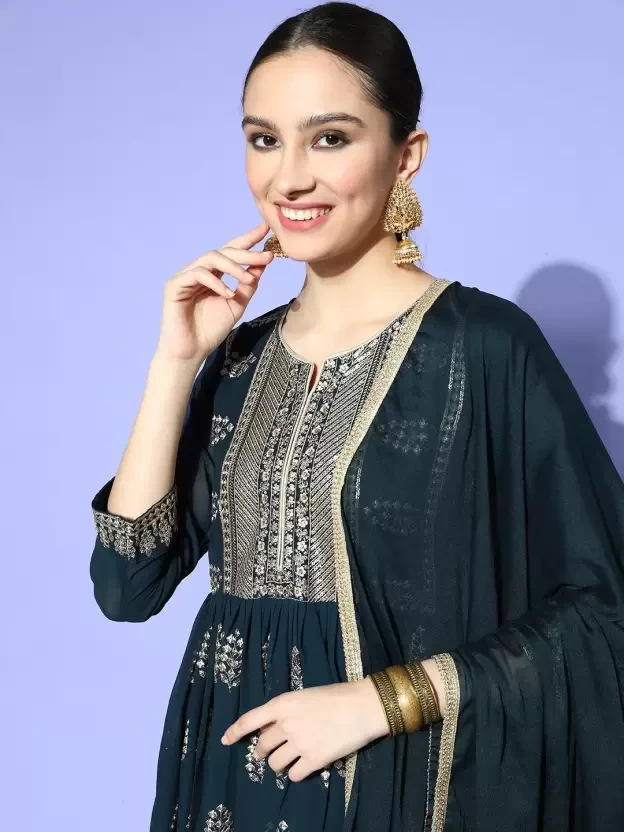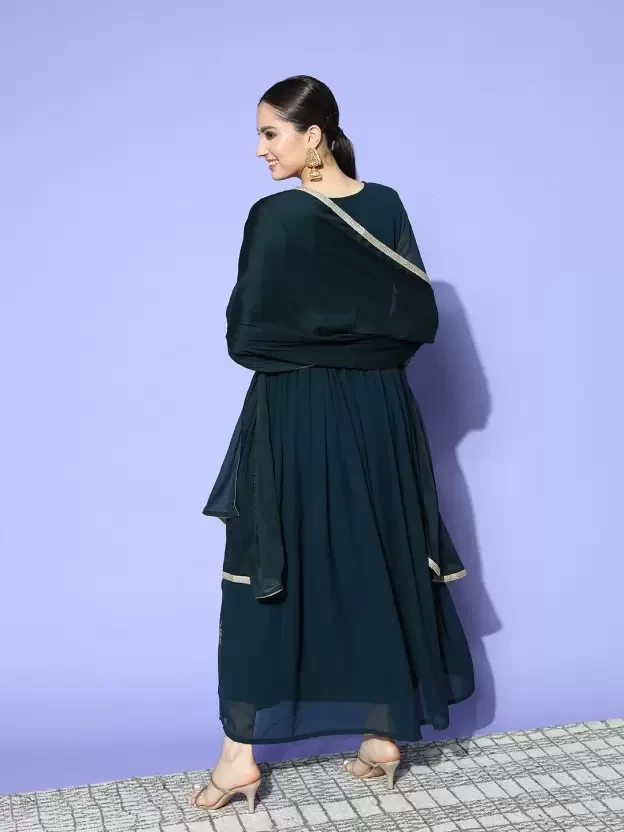 | This Festival Wear Rama Embroidery Work Georgette Silk Kurti With Dupatta is accenting the charming feeling. The embroidery work work appears to be chic and fantastic for any function. |