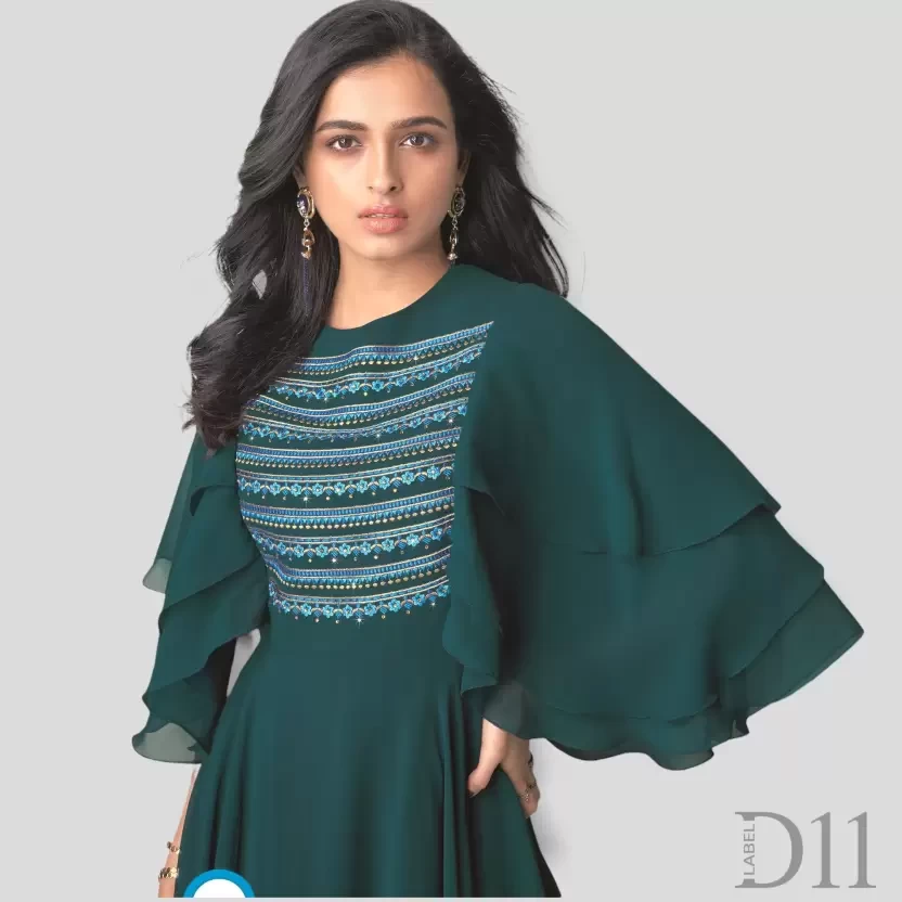 | This Festival Wear Rama Embroidery Work Georgette Silk Kurti With Dupatta is accenting the charming feeling. The embroidery work work appears to be chic and fantastic for any function. |
