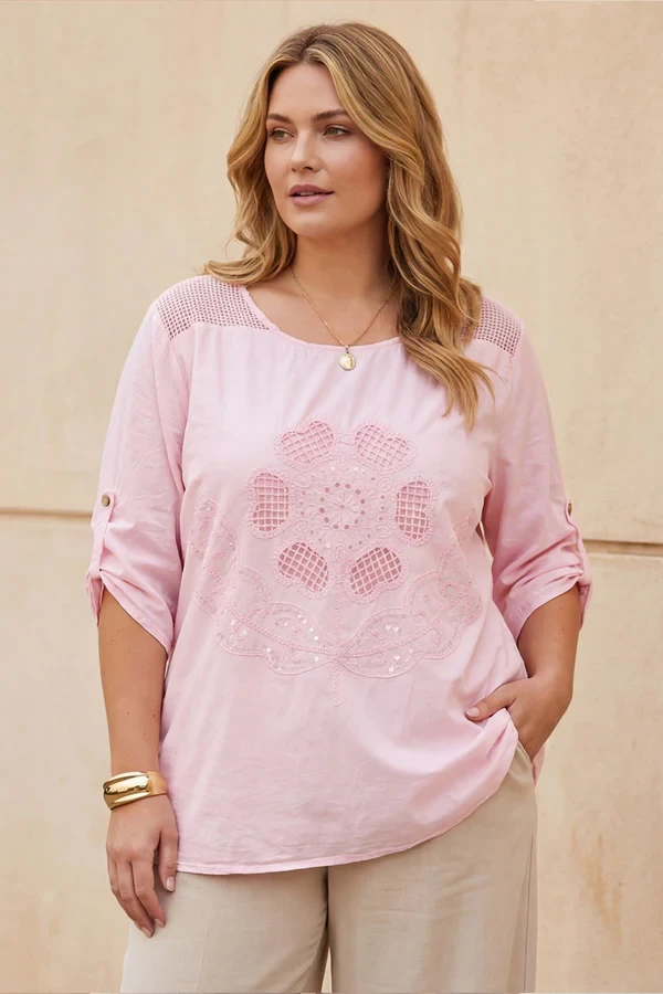 Floral Embroidered Sequin Detail Tunic Top