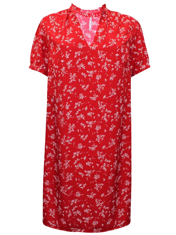 Looking for something light and breezy to wear? This dress is perfect. Comfortable in a woven fabric, it features a notch neckline, short sleeves, and completes with a floral print.