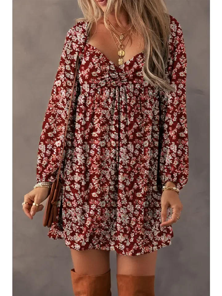 Add a touch of elegance and femininity to your wardrobe with this vibrant dress. Featuring a flattering sweetheart neckline that accentuates the collarbone area, along with a drawstring ruched bust and shirred back for a romantic and eye-catching appeal. Complete with stylish bubble sleeves, this boho dress is the perfect addition to any outfit. 100% Polyester