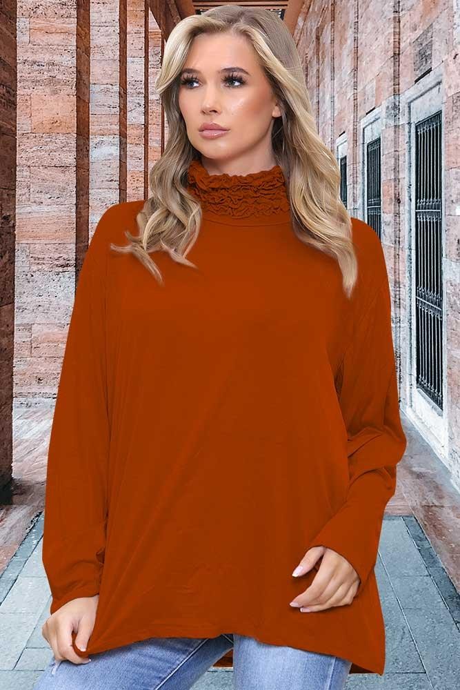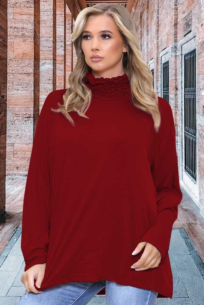 Frill Ruched Roll Neck Top