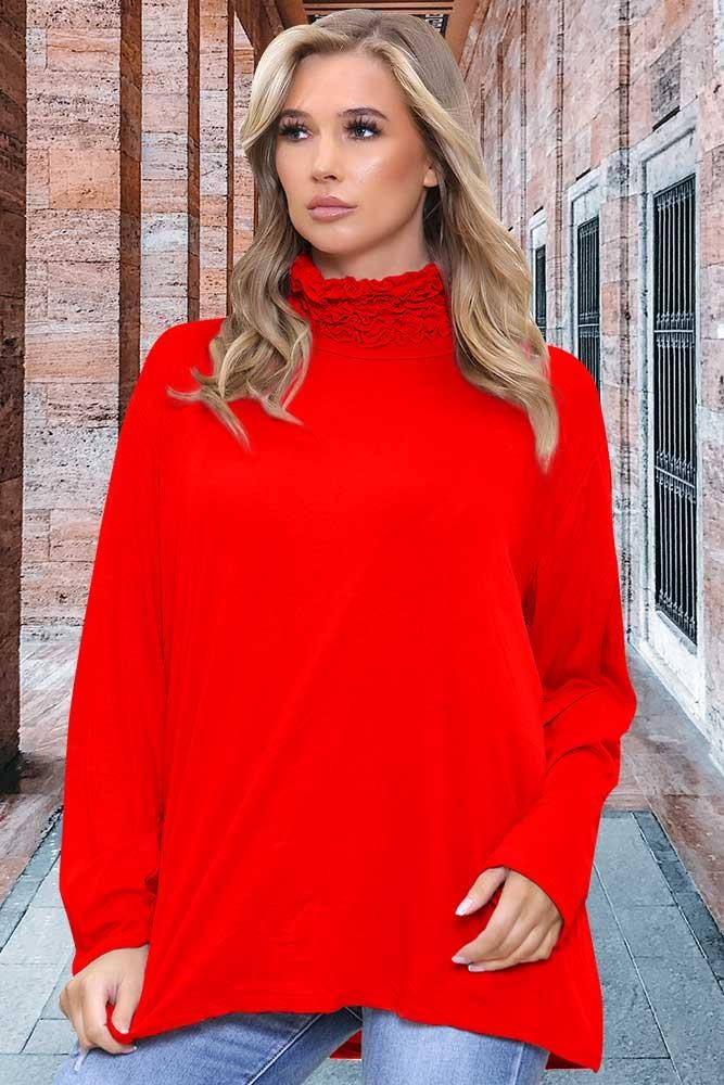 Italian Lace & Frill Neck Shirt Top