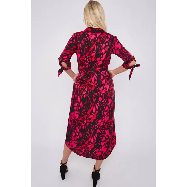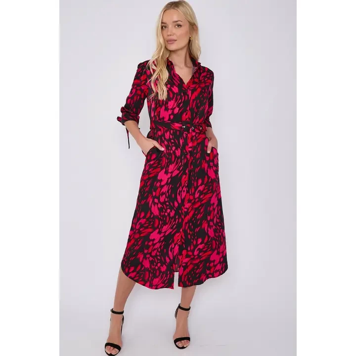The Fuchsia Leopard Print Half Sleeve Belted Maxi Shirt Dress features a vibrant fuchsia leopard print design and a stylish shirt dress silhouette. It has half sleeves, a belted waist for a flattering fit, and two convenient side pockets. The dress's maxi length adds an elegant touch, making it suitable for a variety of occasions. Whether you're attending a casual outing, a daytime event, a garden party, or brunch with friends, this dress offers a versatile and chic option. It's also perfect for summer gatherings and vacation wear, combining comfort with a bold fashion statement.