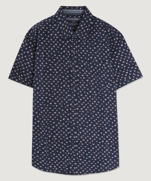 100% COTTON S/S PRINT POPLIN WOVEN GARMENT WASHED / CARBON PEACHED MEN'S CASUAL PRINT SHIRTS REGULAR FIT