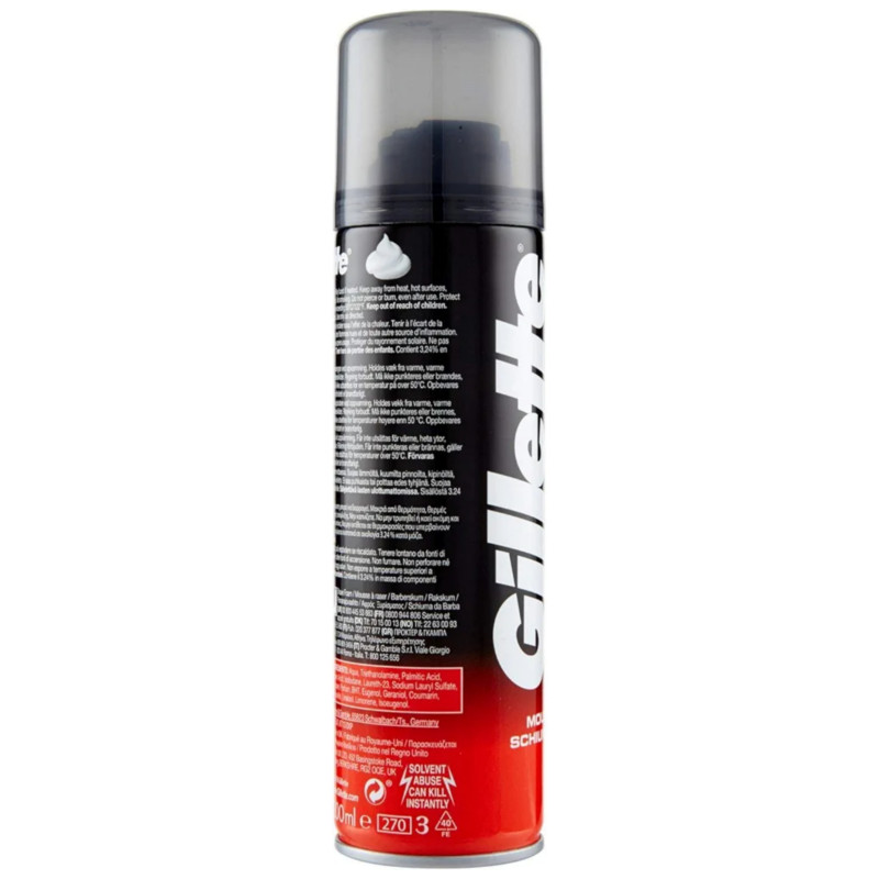 Gillette Shave Foam Regular 200ml is designed to provide a smooth and comfortable shaving experience while protecting the skin from irritation. Its rich, creamy foam spreads easily across the face, helping to soften facial hair for a closer and more efficient shave. The lightweight formula creates a protective cushion between the razor and the skin, reducing friction and minimizing the risk of cuts, nicks, and razor burn. It enhances razor glide, allowing the blade to move smoothly for precise and effortless shaving. The moisturizing ingredients help keep the skin hydrated and comfortable throughout the shaving process. Suitable for everyday use, it supports a quick and effective grooming routine. The foam rinses off easily without leaving residue, leaving the skin feeling clean and refreshed. Its dermatologically tested formula is gentle enough for most skin types. The convenient 200ml can provides long-lasting use and easy dispensing. Ideal for use with all types of manual razors. Helps achieve a neat, smooth, and well-groomed appearance after every shave. The formula helps maintain skin softness while preventing dryness. Compact and travel-friendly packaging makes it convenient for use at home or on the go. Perfect for men who want a reliable and classic shaving foam for daily grooming. Gillette Shave Foam Regular 200ml combines comfort, protection, and smooth performance for an easy and refreshing shaving experience. ✨