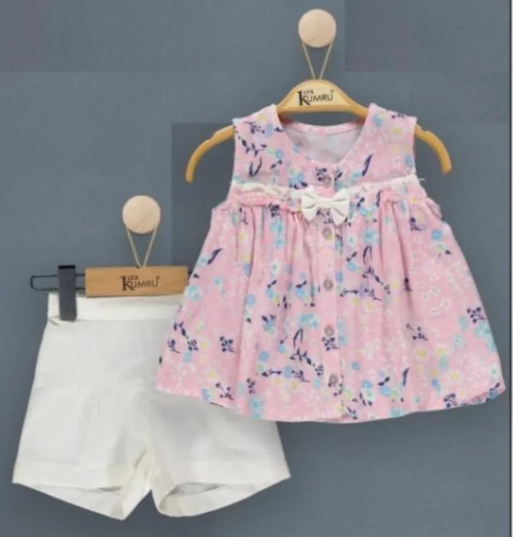 Girls Buttoned Floral Bow Top & Shorts Set (2-5Y)