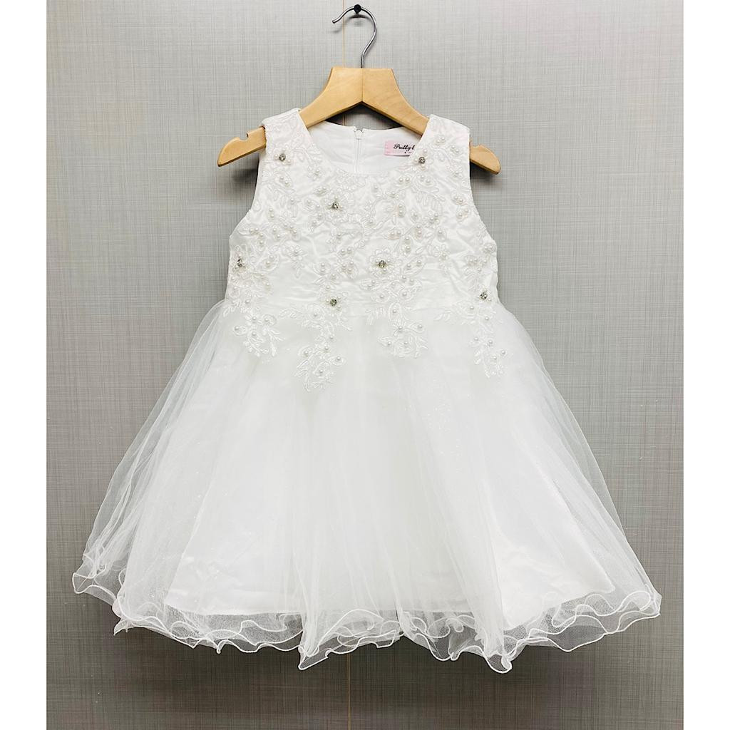 Baby Girls Embroidered Bead Party Dress With Headband & Shoes (6-24M)