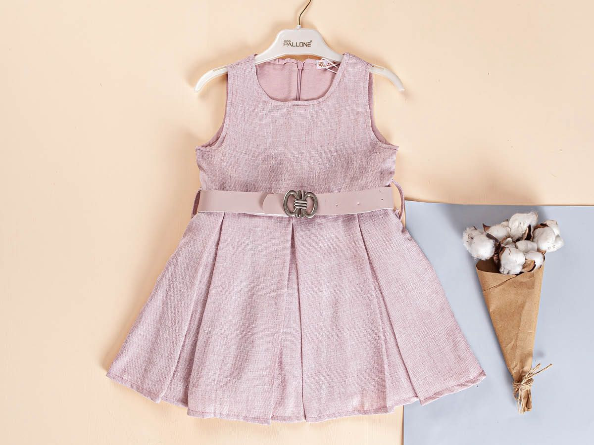 Girls Pleated Summer Dress with Belt (2-5Y)