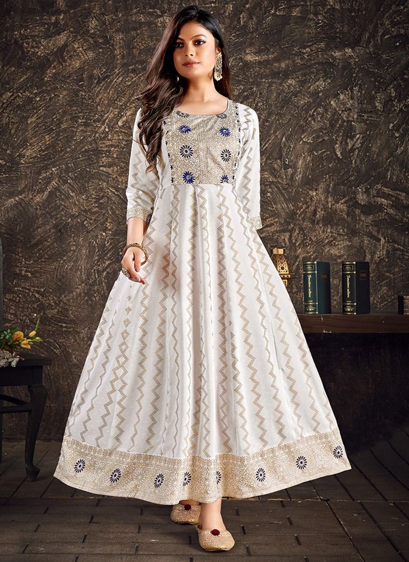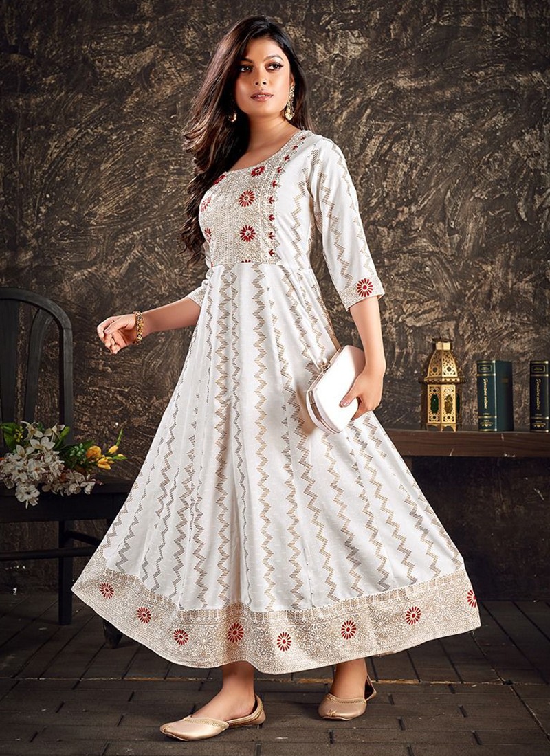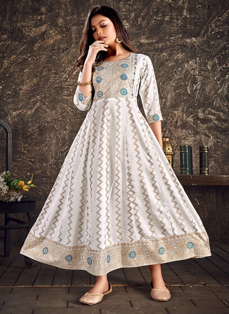 Rayon Long Gown Kurti With Pant And Nazmin Dupatta-3Pieces Set