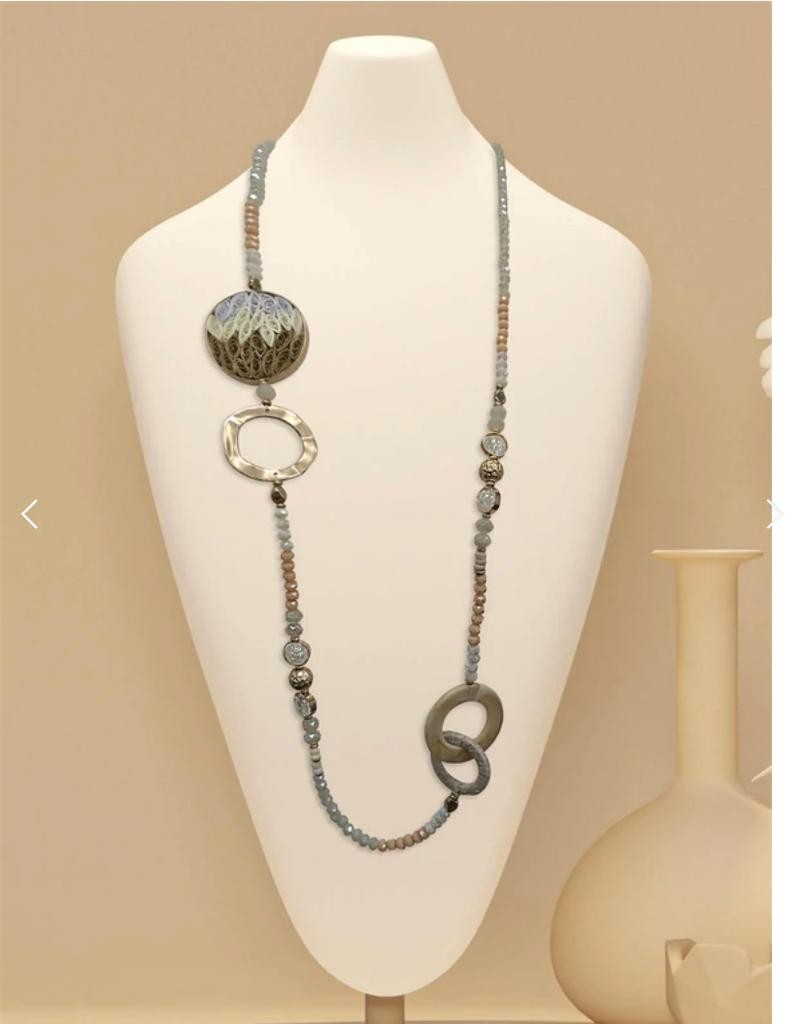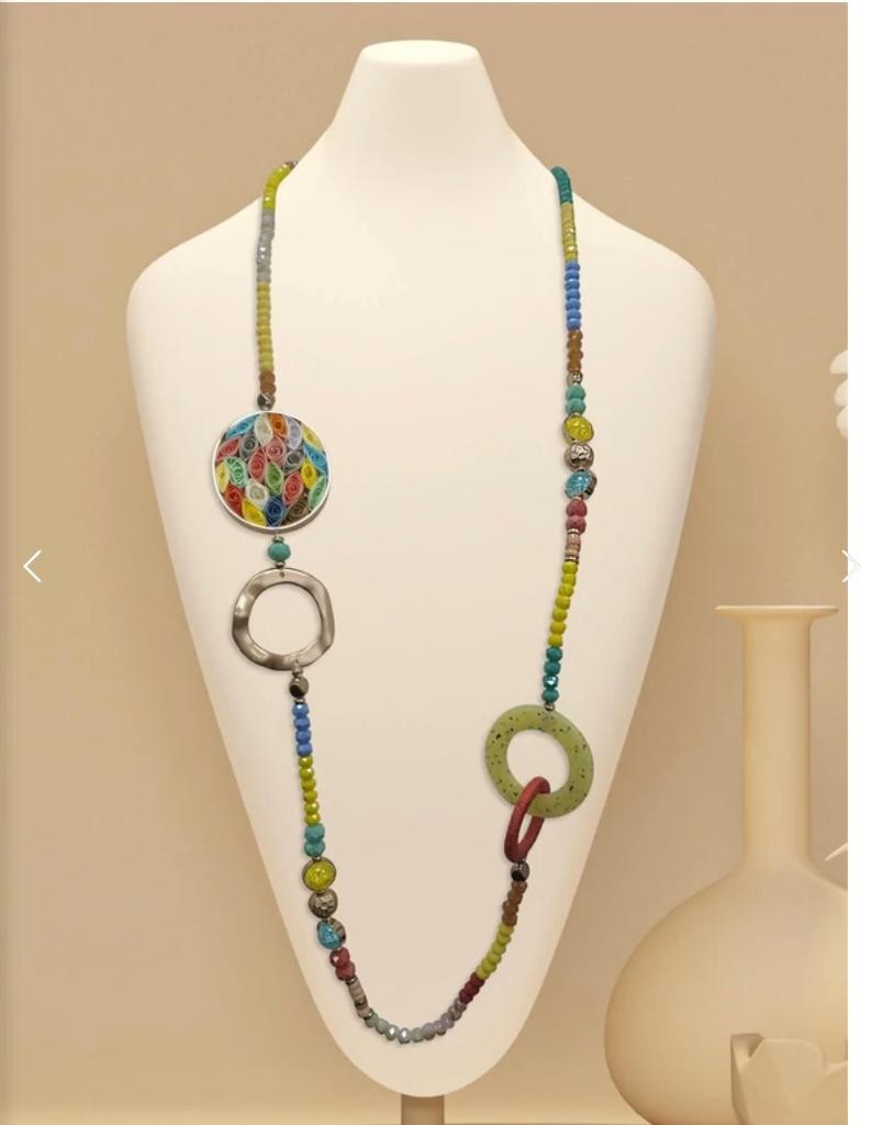 Make a statement with this glass beads & linked loops necklace it has fashionable elegance to update any outfit.