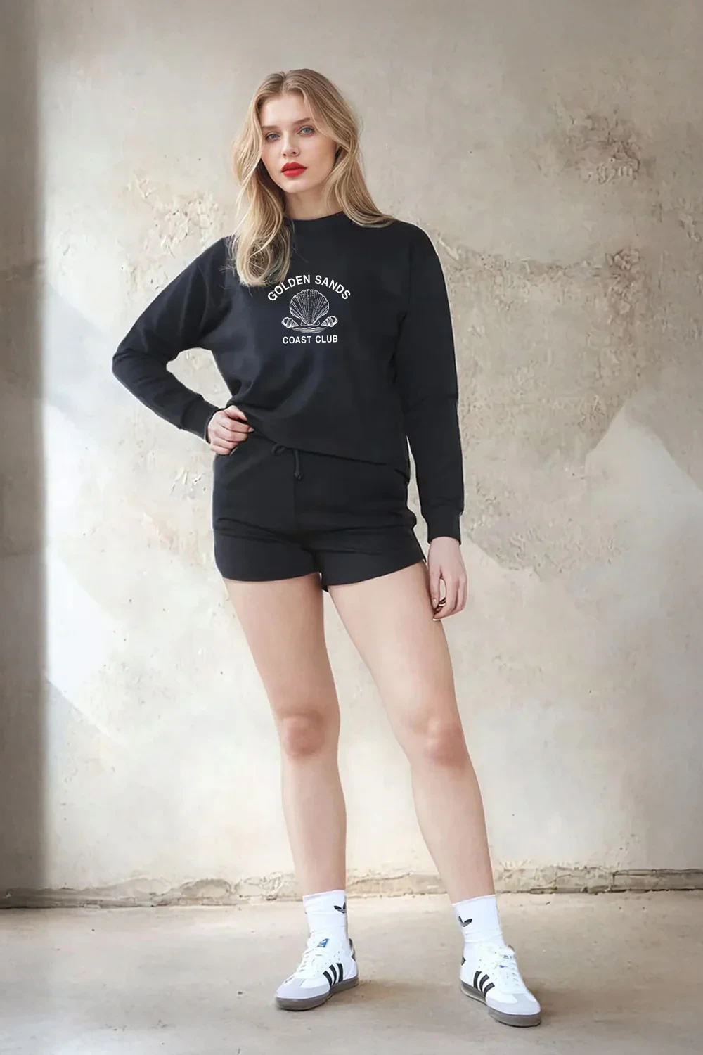 Dropped Shoulder Crop Sweatshirt. Shorts with Functional Drawcord and pockets.