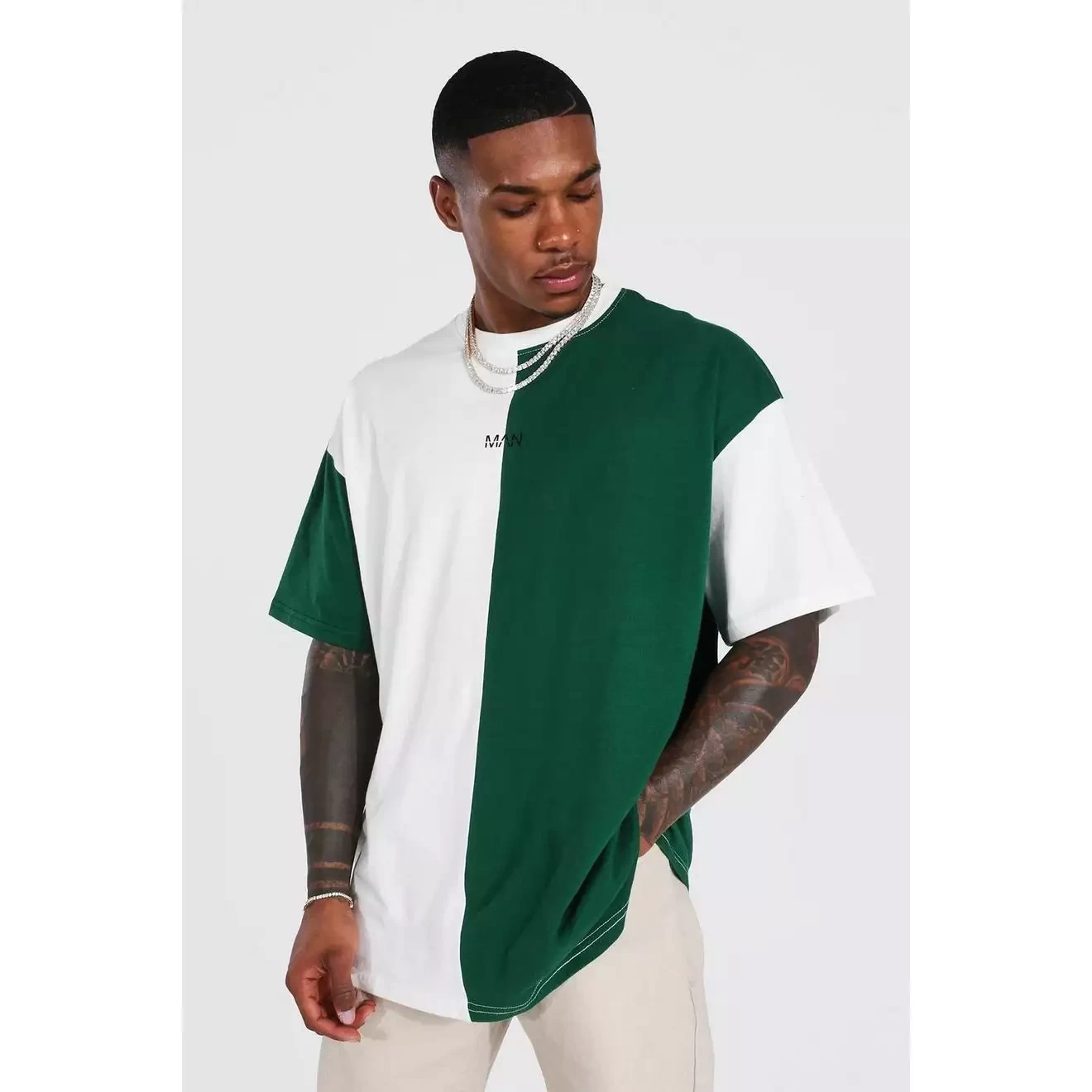 Green oversized colour block t-shirt