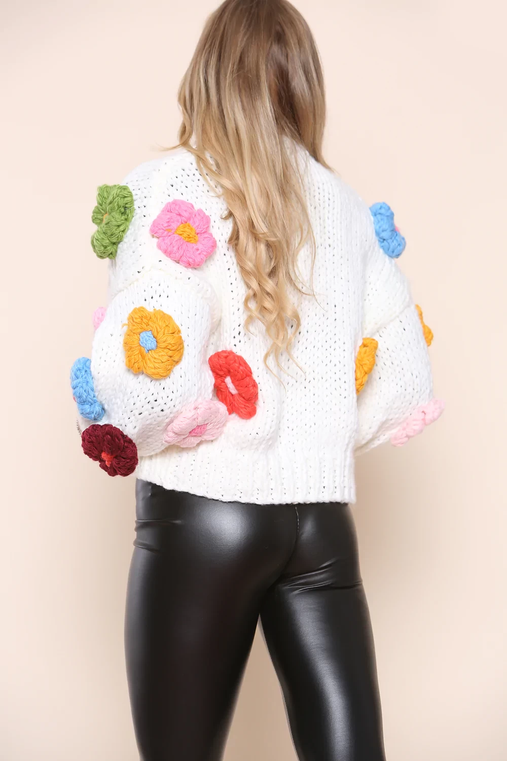 HAND KNIT CARDIGAN WITH FLOWER DETAILING