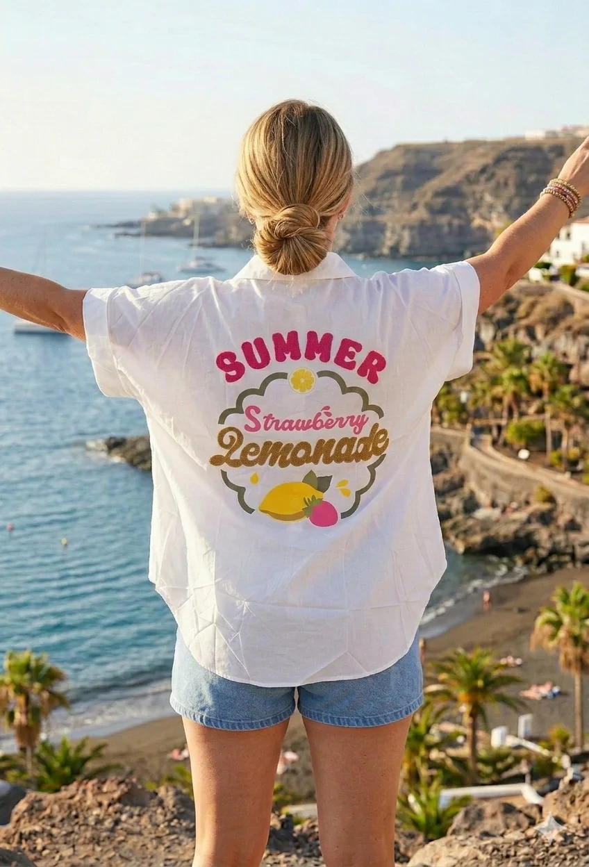 HAPPY HOLIDAY PRINTED OVERSIZED SHIRT