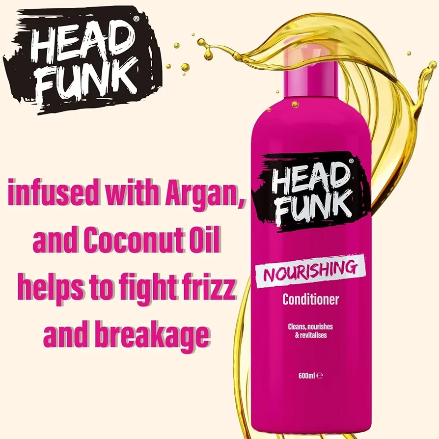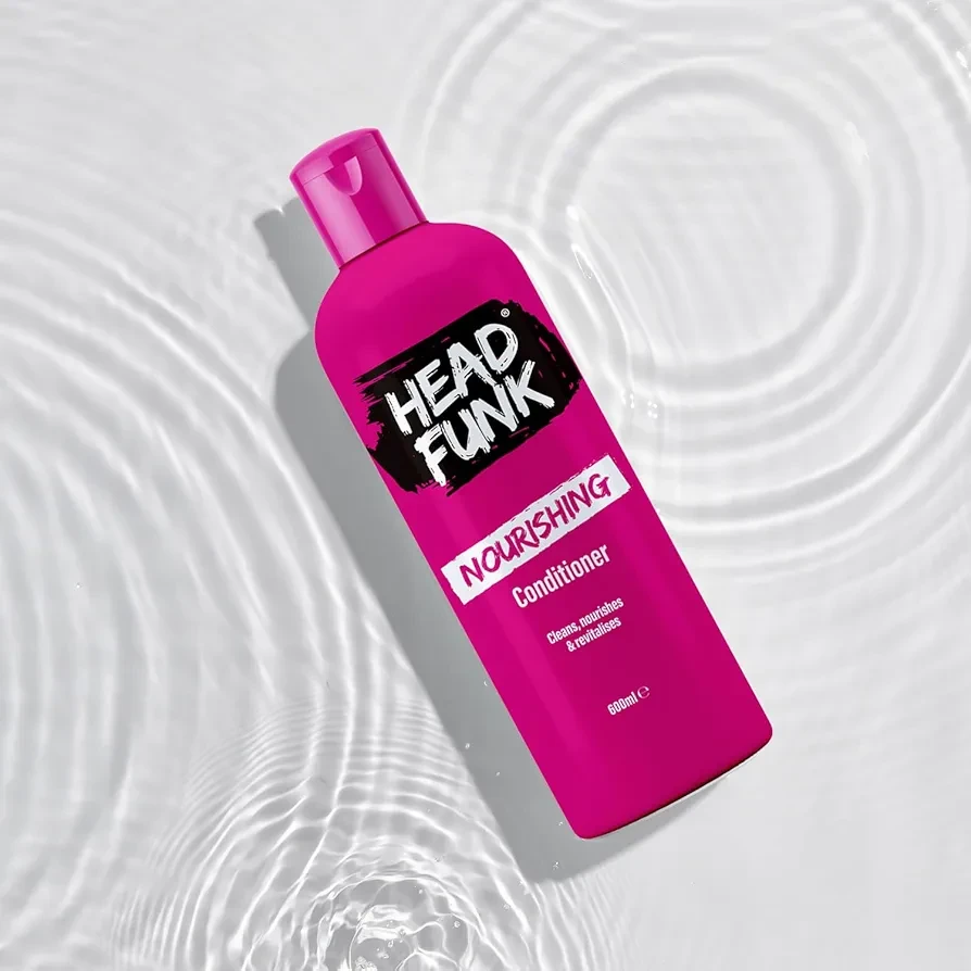 Head Funk Cleans & Revitalises Nourishing Conditioner 600ml is a deeply hydrating formula designed to restore softness, strength, and shine to your hair after every wash. This conditioner works to replenish lost moisture, helping to revive dry, dull, and tired-looking hair with a healthy, nourished feel. Its rich yet lightweight texture spreads easily through the lengths, ensuring even coverage without weighing the hair down. It helps smooth the hair cuticle, reducing frizz and flyaways for a sleek, polished finish. The nourishing ingredients penetrate deeply to strengthen each strand, minimizing breakage and improving overall hair resilience. Suitable for daily use, it complements your shampoo routine by locking in moisture and enhancing manageability. It also helps detangle knots effortlessly, making hair easier to comb and style. Ideal for all hair types, it leaves your hair feeling silky, soft, and touchably smooth. With regular use, it improves hair texture and boosts natural shine for a vibrant look. The revitalizing formula supports a healthy scalp environment while caring for the lengths of your hair. Its pleasant fragrance lingers subtly, keeping your hair fresh throughout the day. The generous 600ml bottle provides long-lasting use, making it perfect for families. Dermatologically tested, it is gentle and safe for everyday application. This conditioner is the perfect finishing step for clean, nourished, and beautifully revitalized hair.