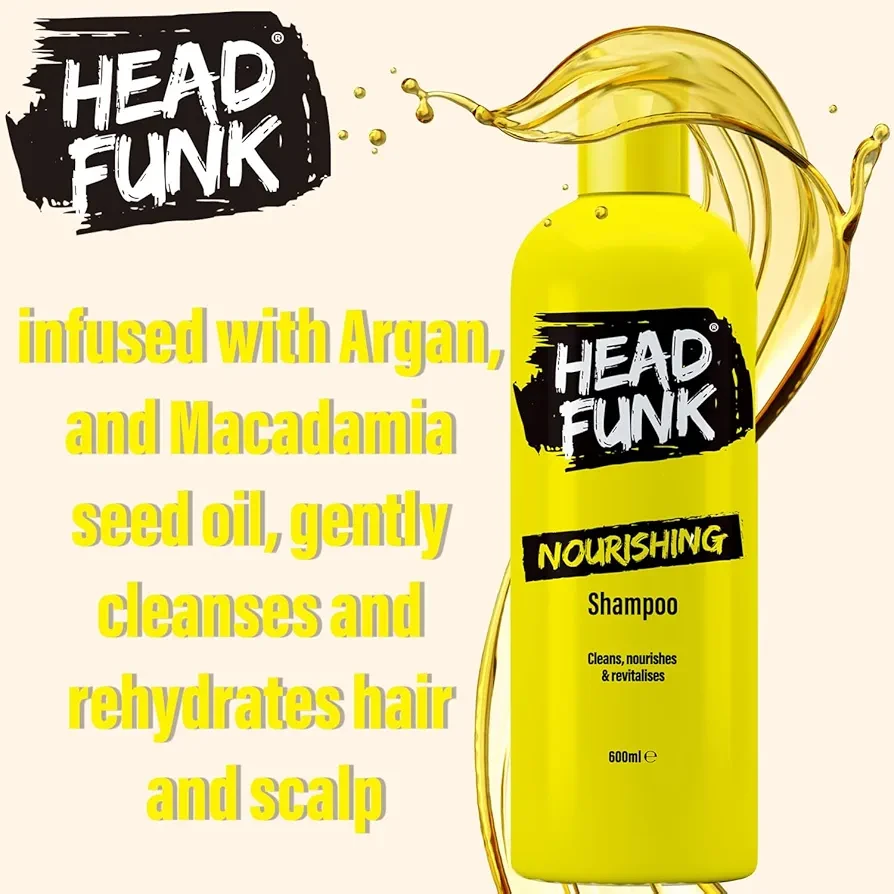 Head Funk Cleans & Revitalises Nourishing Shampoo 600ml is a refreshing and deeply nourishing formula designed to cleanse your hair while restoring its natural vitality. This shampoo effectively removes dirt, excess oil, and product buildup, leaving your scalp clean and refreshed after every wash. Enriched with nourishing ingredients, it helps hydrate and strengthen the hair from root to tip, promoting healthier-looking strands. The revitalizing formula works to improve hair texture, making it softer, smoother, and more manageable. It gently cares for the scalp, reducing dryness and discomfort while maintaining a balanced moisture level. Suitable for daily use, it provides a perfect combination of cleansing and conditioning benefits. The lightweight consistency creates a rich lather that spreads easily for thorough cleansing. Ideal for all hair types, it enhances natural shine and leaves hair looking vibrant and full of life. With regular use, it helps reduce dullness and supports overall hair health. The pleasant fragrance leaves your hair smelling fresh and clean throughout the day. It also helps detangle hair, making styling easier and more convenient. The large 600ml bottle offers long-lasting value, perfect for family use. Dermatologically tested, it is gentle on both hair and scalp. This shampoo is designed to energize tired, lifeless hair and bring back its natural bounce. It is a reliable choice for those seeking clean, nourished, and revitalized hair every day.