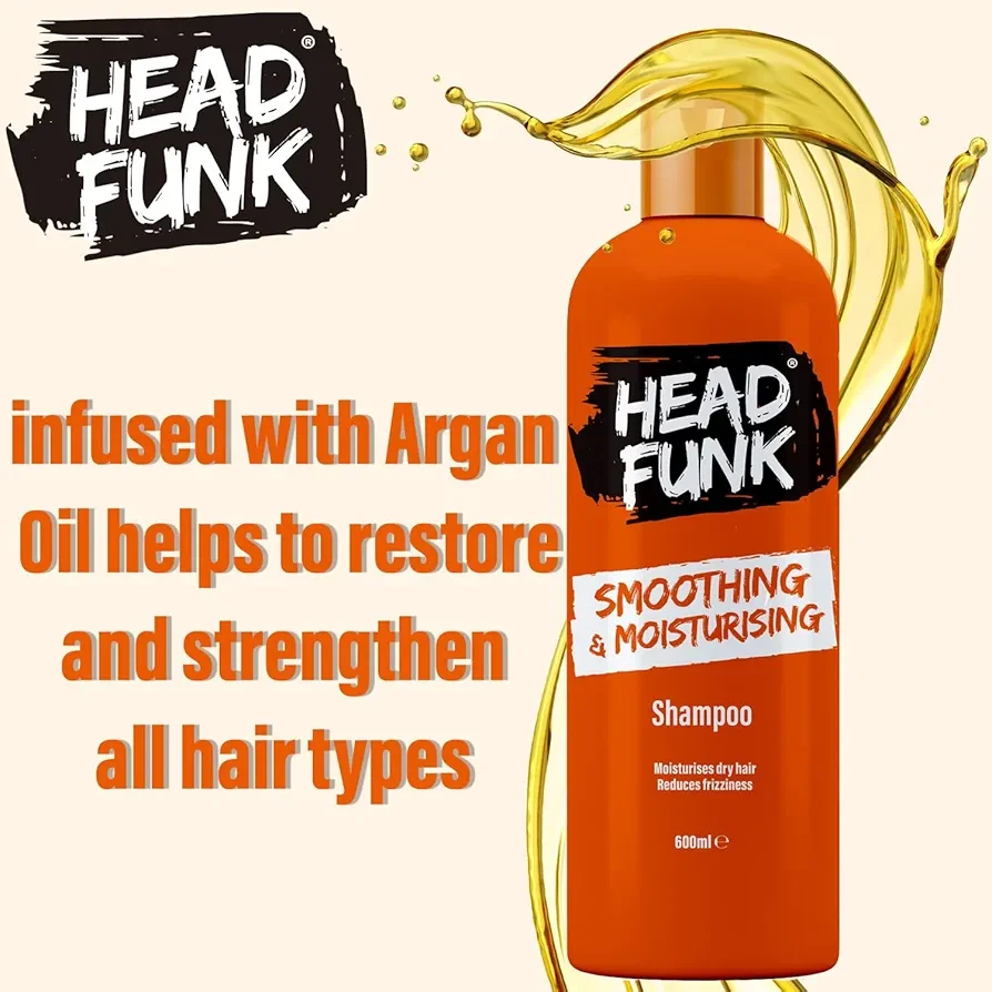 Head Funk Smoothing & Moisturising Shampoo 600ml is a deeply nourishing formula designed to cleanse your hair while delivering intense hydration and smoothness. This shampoo effectively removes dirt, oil, and buildup, leaving your scalp feeling fresh and clean after every wash. Infused with moisturizing ingredients, it helps restore lost hydration, making dry and frizzy hair soft and manageable. The smoothing formula works to tame flyaways and reduce frizz, giving your hair a sleek and polished appearance. It gently cares for the scalp, maintaining a healthy moisture balance and preventing dryness or irritation. Suitable for daily use, it provides a perfect blend of cleansing and conditioning benefits in one step. The lightweight texture creates a rich lather that spreads easily, ensuring thorough and even cleansing. Ideal for all hair types, especially dry and unruly hair, it enhances natural shine and softness. With regular use, it improves overall hair texture and leaves it feeling silky to the touch. The refreshing fragrance keeps your hair smelling clean and pleasant throughout the day. It also helps detangle hair, making styling easier and more convenient. The generous 600ml bottle offers long-lasting value, perfect for family use. Dermatologically tested, it is gentle and safe for everyday application. This shampoo is an excellent choice for achieving smooth, hydrated, and healthy-looking hair with every wash.
