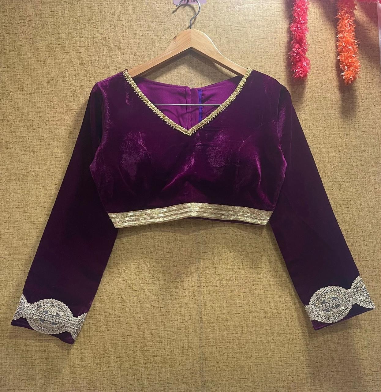 Velvet Blouse with SabhyaSanchi Nack dign