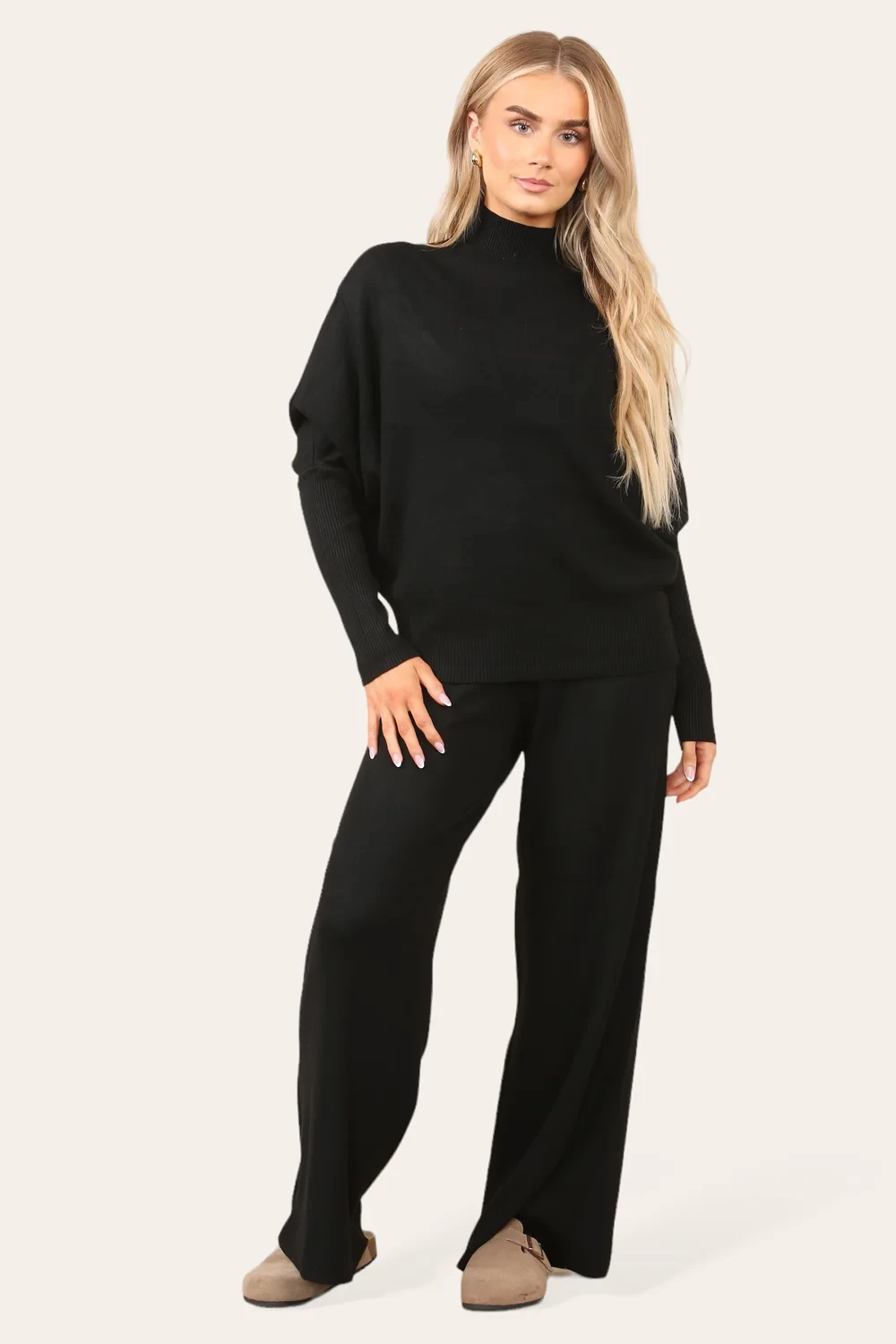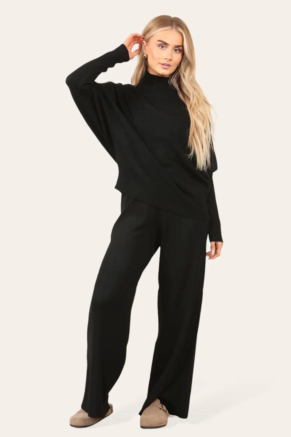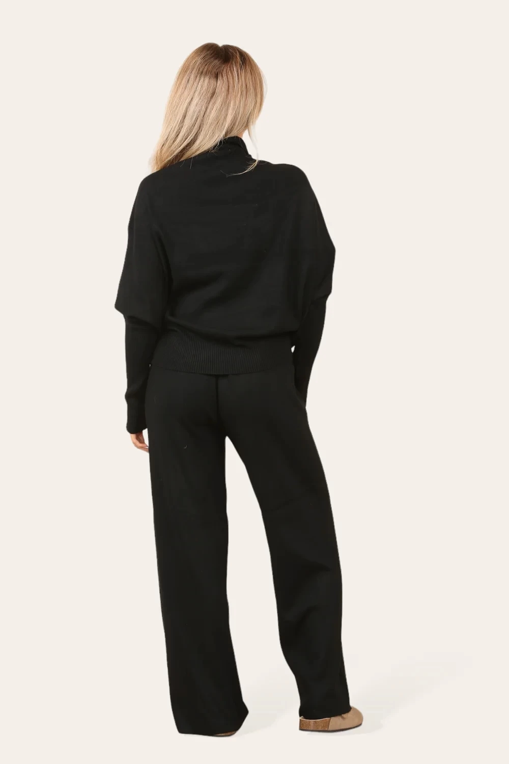 HIGH NECK KNITTED LOUNGEWEAR - BLACK