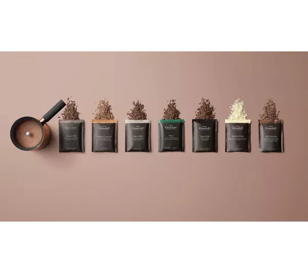 The Velvetiser comes with two ceramic cups and 10 Hotel Chocolat Hot Chocolate sachets. That means you and a friend can try out the different flavours and find your new favourite hot chocolate mix.