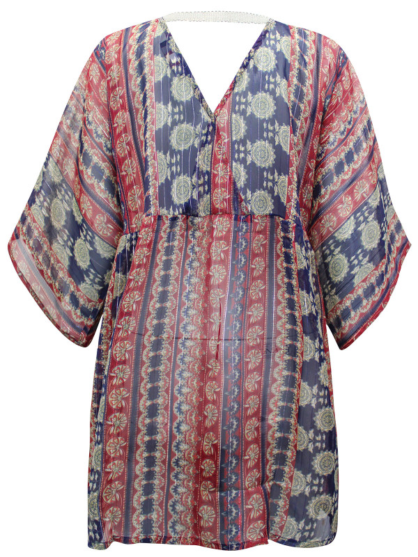 Complete with dramatic wide sleeves, a tassel tie neckline, this enchanting tunic ticks all the boxes! Length 35in.