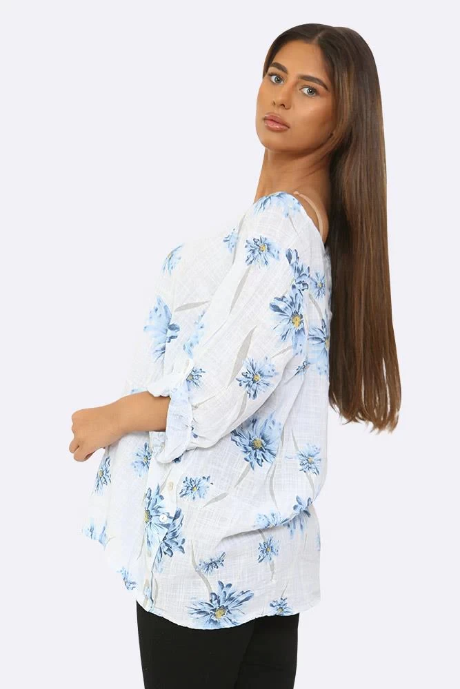 Italian Cotton Floral Button Detail Top