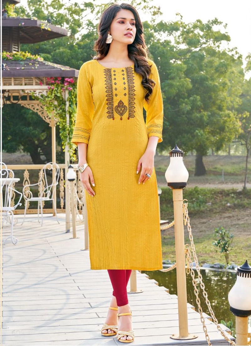 Kashish Rayon Lurex Hand Work Designer Kurtis Collection