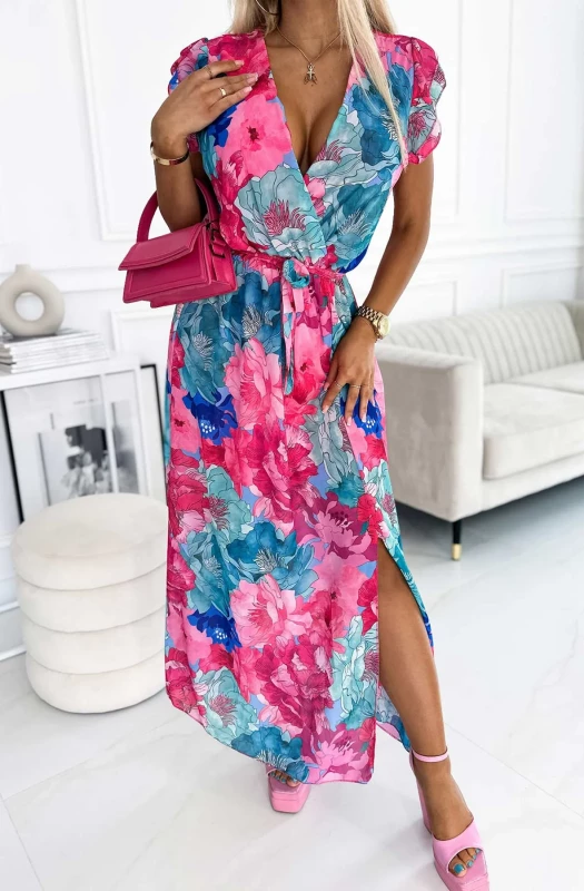 Low cut open front wrap 'V' neckline with elasticated waistband