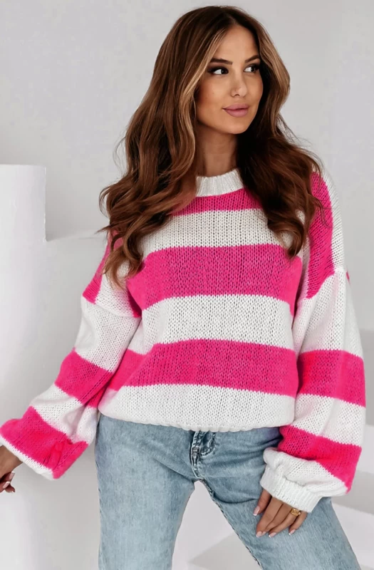 This impressive oversized style knitted striped jumper is sure to turn heads! It comes in a range of stunning colors with contrast striped block print detail. Added with a classic crew neckline and long balloon sleeves with ribbed cuffs. This effortlessly chic top comes in one size and fits approx. size of: One Size (UK 8-14 - fits between size 8 up to size 14) and the length is approximately 26”(66cm). Crafted from an ultra soft and stretchy blend of 65% Polyacrylic 15% Polyammidica 10% Lana 10% Viscose. Plus, it’s Italian-made for unbeatable quality and style. A sure must have for any Autumn/Winter season!