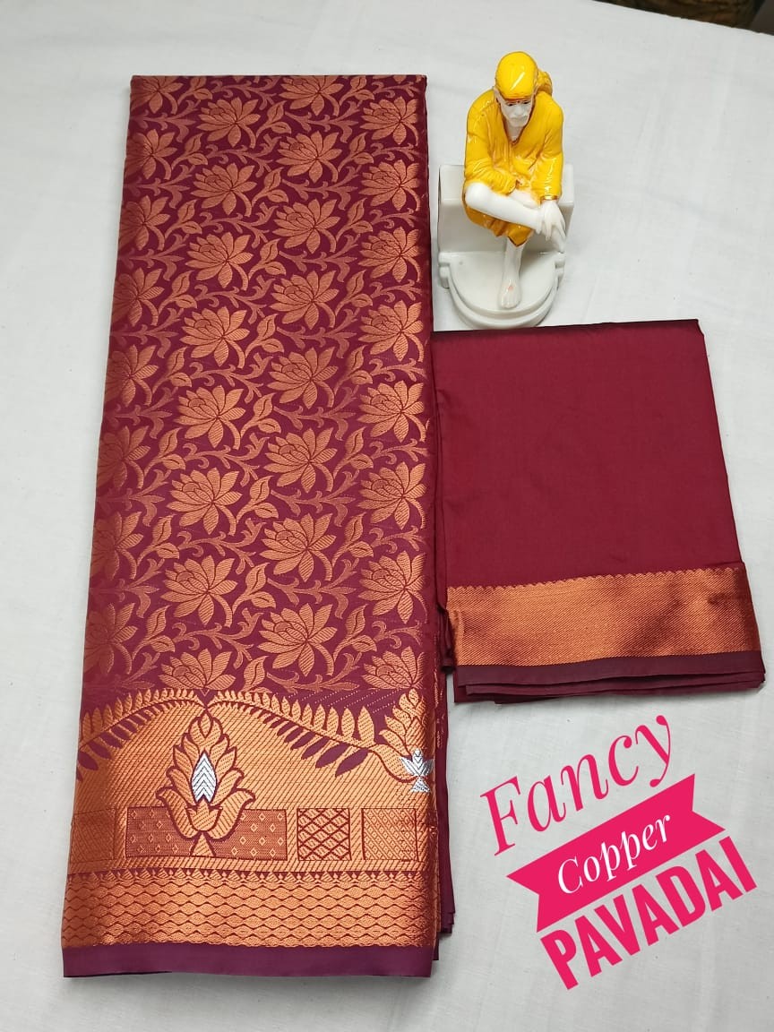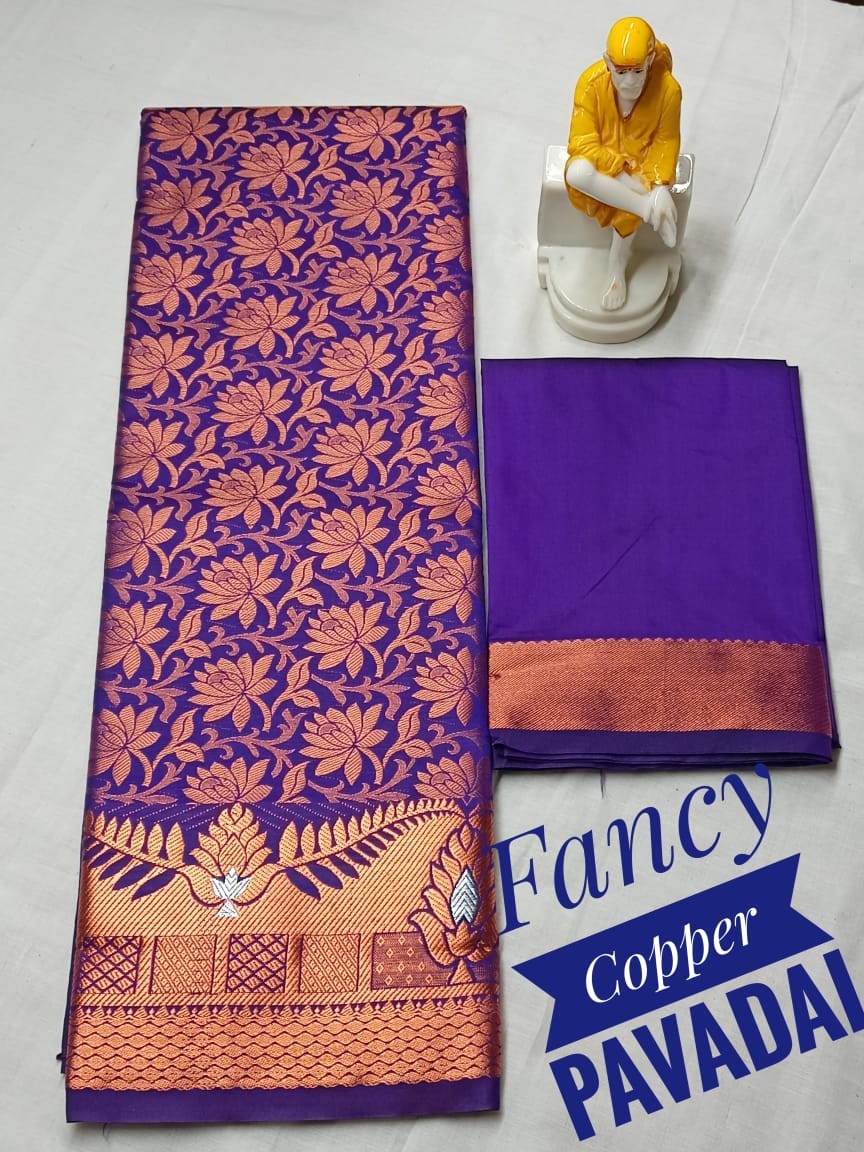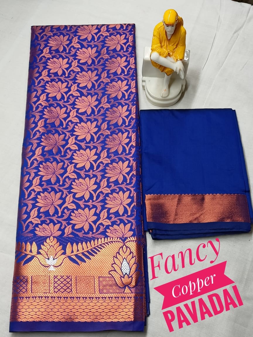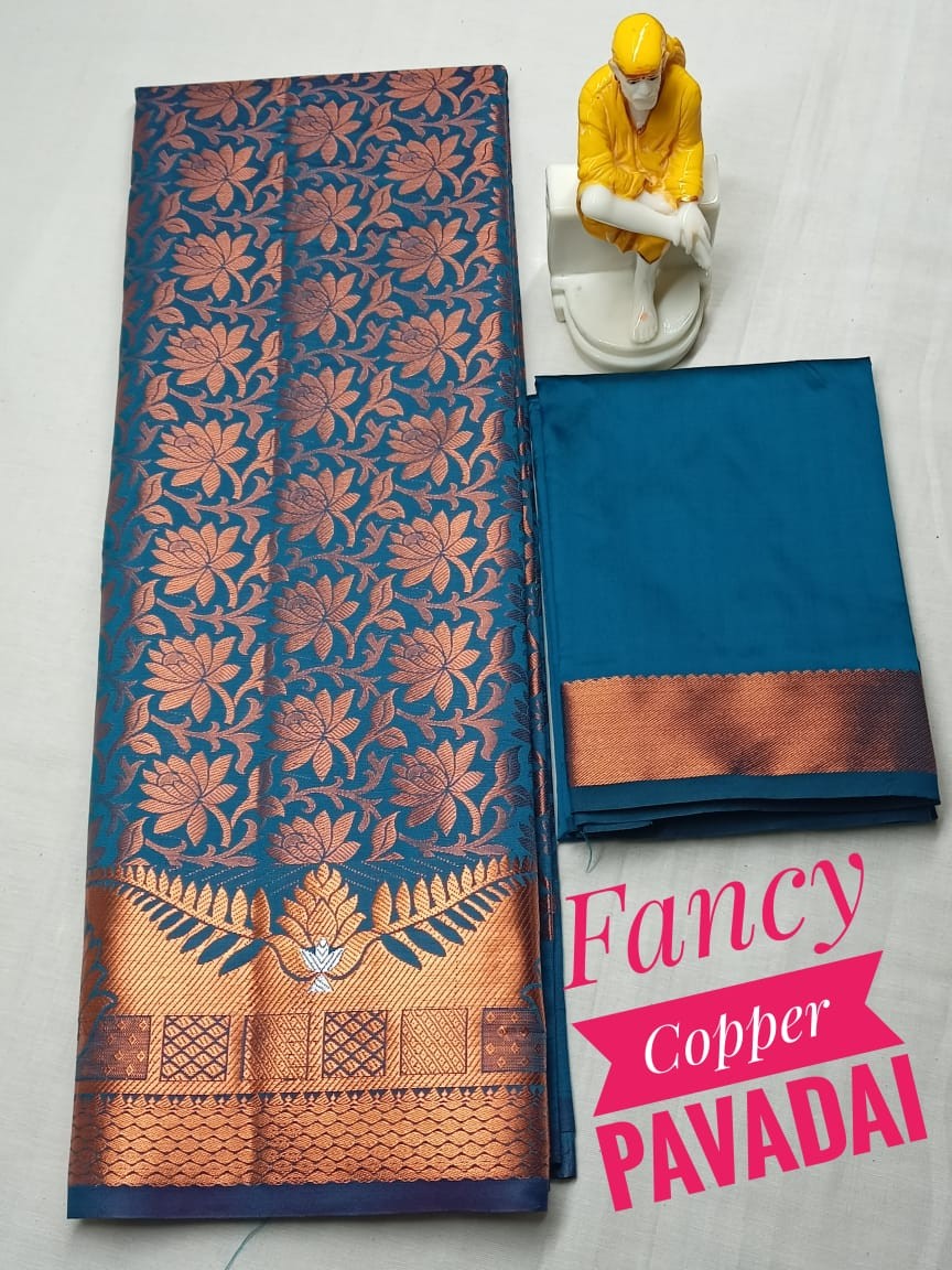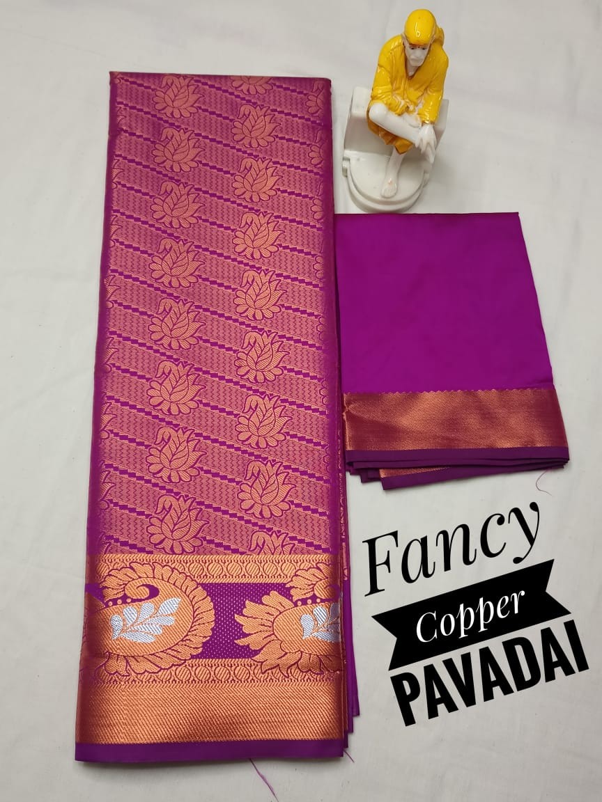 Kids pattu pavadai material ( Lehanga) Bottom :- 2.70 m ( height - 44 inch) Top :- 1.0 m ( Unstitched)