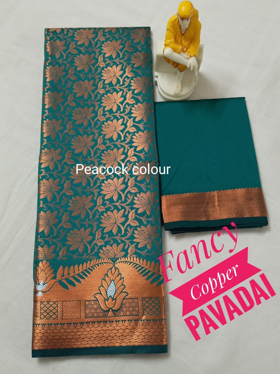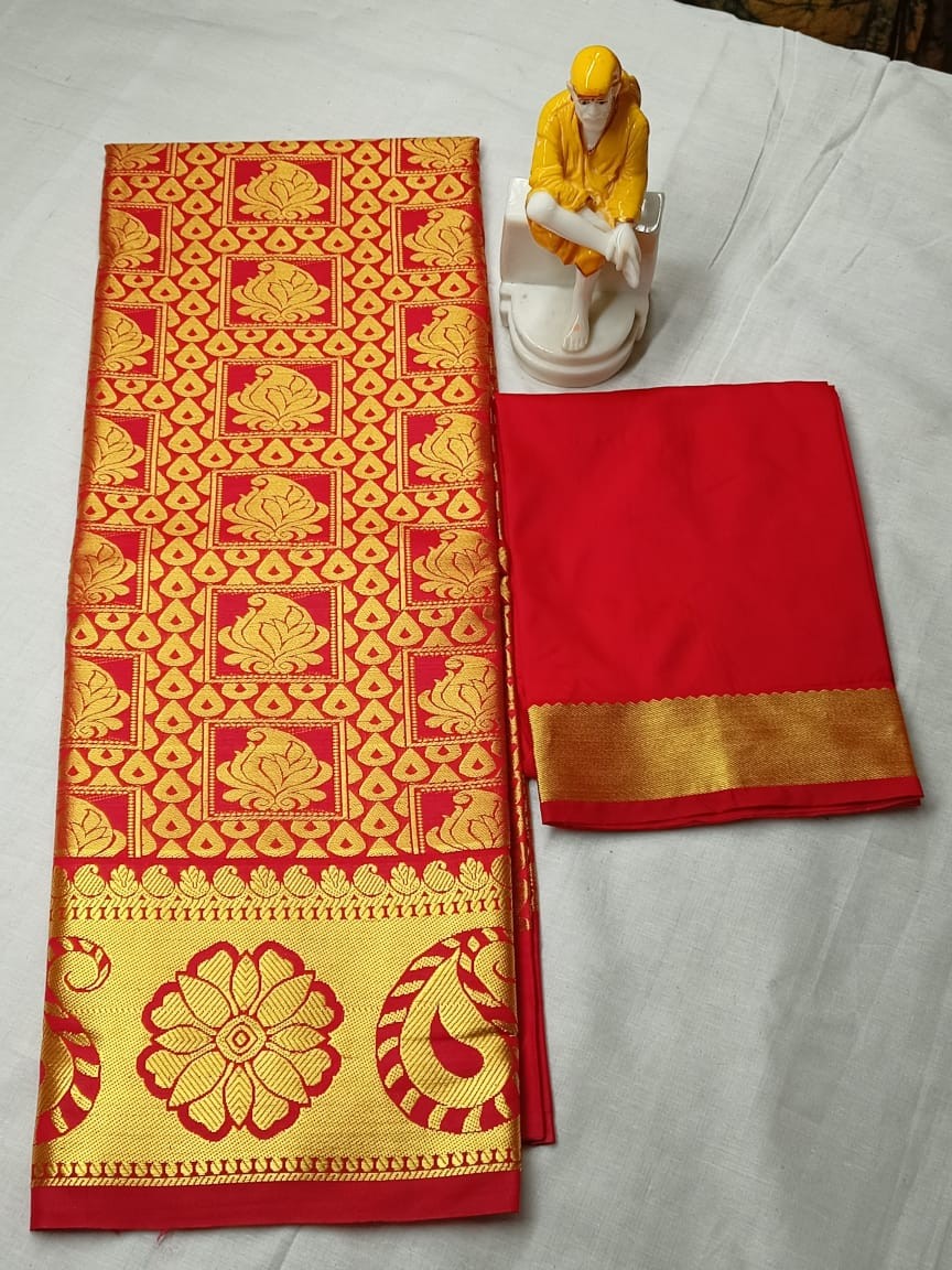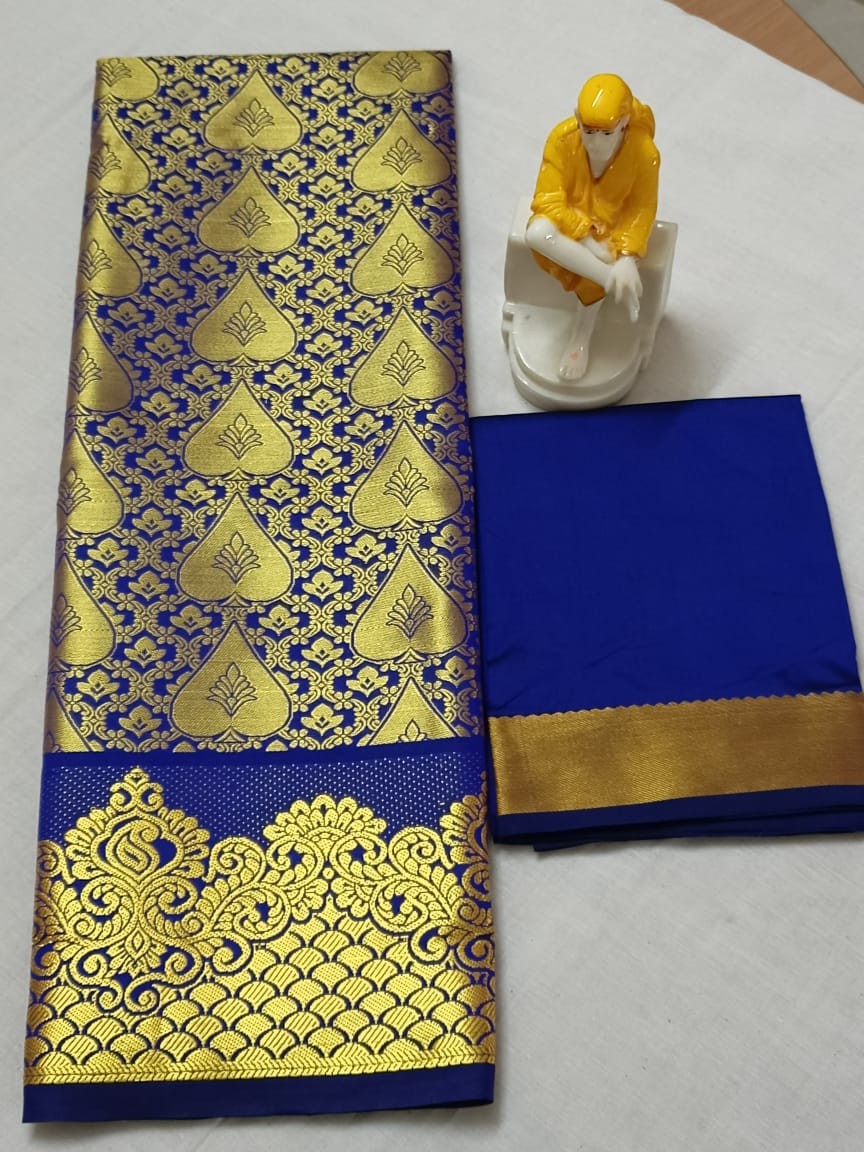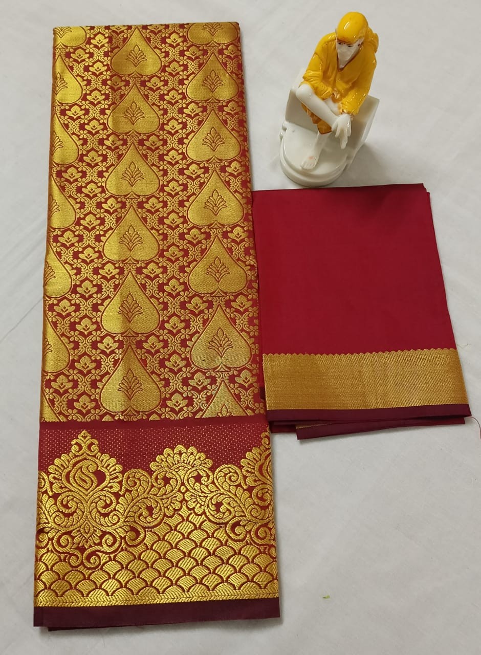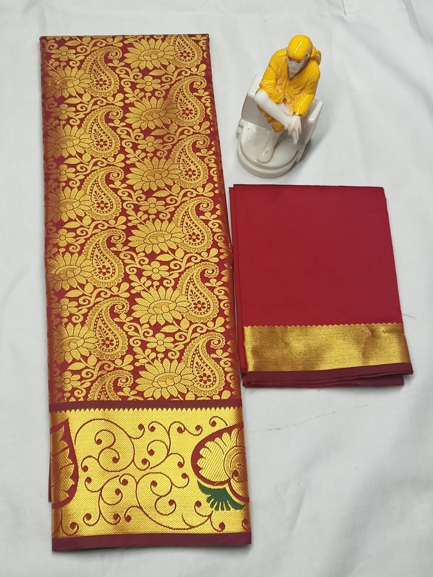 Kids pattu pavadai material ( Lehanga) Bottom :- 2.70 m ( height - 44 inch) Top :- 1.0 m ( Unstitched)
