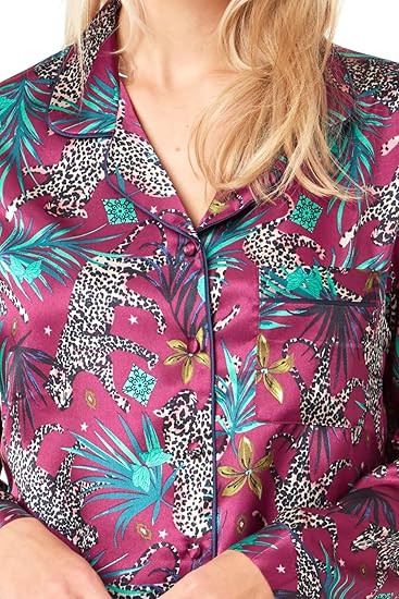 Ladies Jungle Cheetah Print Long Sleeve Pyjamas by Indigo Sky, With Matching Padded Hanger, Colour: Raspberry, Size: 10/12, 14/16, 18/20, 100% Polyester, Minimum Order Quantity 1 Piece, Matching Nightdress & Wrap Available |