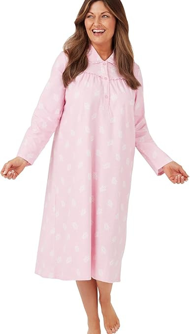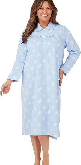 Ladies Long Sleeve 100% Brushed Cotton Leaf Print 42" Wincey Nightdress by Marlon,