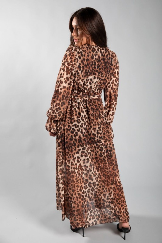 LEOPARD PRINT BELTED MAXI DRESS