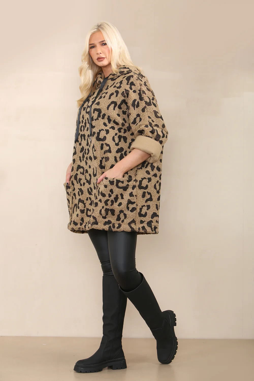 LEOPARD TEDDY POCKET HOODIE