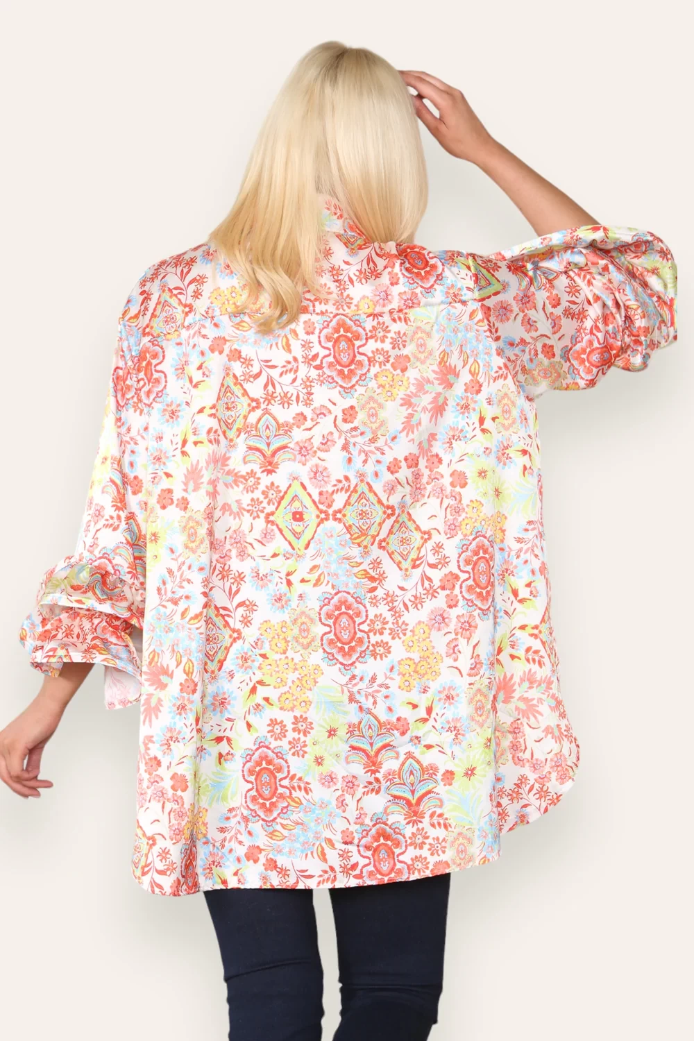 PUFF SLEEVE PRINTED SATIN SHIRT