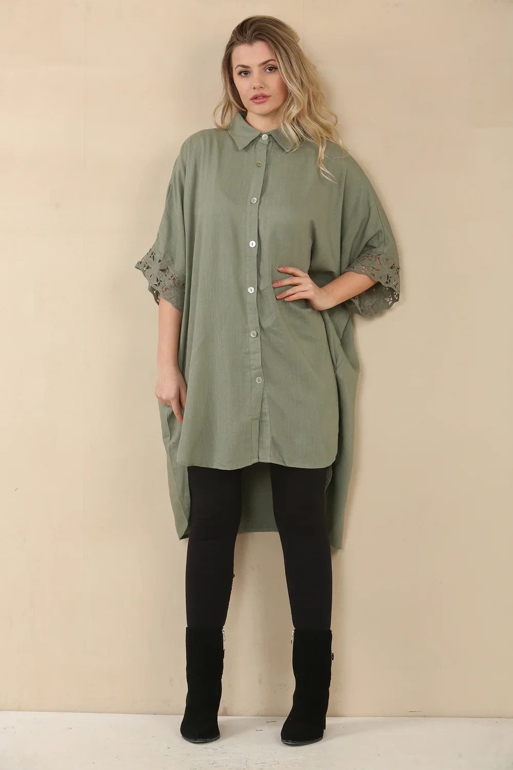 LINEN CROCHET SLEEVE SHIRT