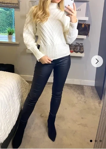 Plain black color short jumper top Mock neck design Cable knit feature Super soft knit fabric