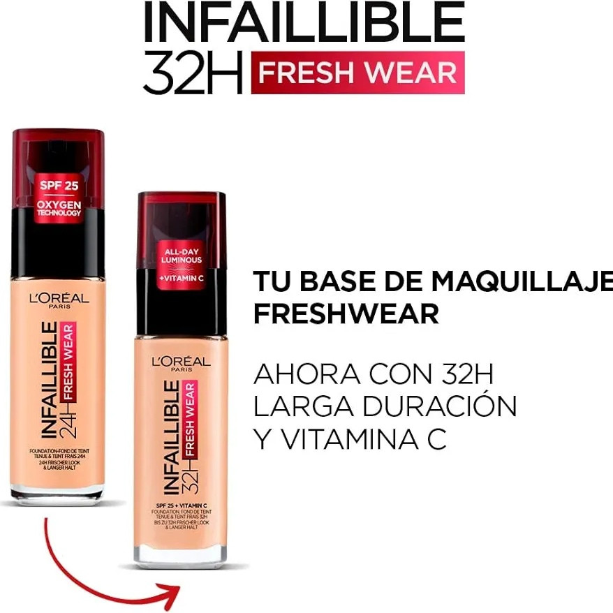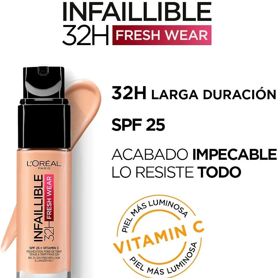 L’Oréal Infaillible 24H Fresh Wear Foundation – 340 Copper is a high-performance liquid foundation designed to deliver long-lasting coverage with a lightweight, breathable feel for all-day comfort. Developed by L'Oréal Paris, this advanced formula provides up to 24 hours of fresh wear, helping your makeup stay intact from morning to night. The ultra-thin texture blends seamlessly into the skin, offering medium to full buildable coverage that evens out skin tone without looking heavy or cakey. It features breathable skin technology that allows the skin to feel light and comfortable throughout the day. The shade 340 Copper is ideal for medium to deep skin tones with warm undertones, enhancing natural complexion with a radiant finish. The formula is waterproof, sweatproof, and transfer-resistant, making it perfect for long days and humid conditions. It also contains oil-absorbing ingredients that help control shine and keep skin looking fresh. � The foundation provides a natural, healthy-looking glow while maintaining a smooth and even appearance. Non-comedogenic and suitable for all skin types, it helps prevent clogged pores and breakouts. It glides easily onto the skin using fingers, a sponge, or a brush for effortless application. The long-wear formula resists fading and keeps colour true throughout the day. Ideal for everyday wear or special occasions, it delivers professional-quality results at home. With regular use, it enhances overall skin appearance by creating a flawless, even-toned look. Enjoy long-lasting, breathable, and fresh-looking makeup with L’Oréal Infaillible 24H Fresh Wear Foundation.
