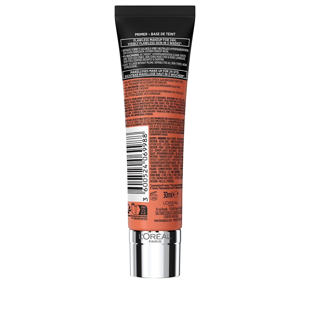 L’Oreal Paris Prime Lab 24HR Primer 30ml – Dulness Reducer is a lightweight, high-performance primer designed to revive tired, dull-looking skin while creating a smooth canvas for makeup application. Its silky, fast-absorbing formula helps reduce dullness and uneven texture, giving the complexion a natural, healthy glow. Enriched with nourishing ingredients and light-reflecting pigments, the primer instantly brightens the skin and enhances radiance. The smooth texture glides effortlessly across the face, minimizing the appearance of pores and fine lines for a flawless base. It helps makeup apply more evenly and improves its longevity, keeping your foundation fresh and vibrant for up to 24 hours. The primer can be worn alone for a subtle glow or under foundation for a polished, radiant finish. Its lightweight, non-greasy formula ensures comfortable wear throughout the day without clogging pores. Suitable for all skin types, including normal, combination, and dull skin. The gentle texture allows for easy blending with fingertips or brushes for precision application. Compact 30ml packaging makes it travel-friendly and convenient for everyday use. The formula supports long-lasting hydration while improving skin texture and luminosity. It enhances the appearance of tired skin, leaving it looking fresh, awake, and revitalized. L’Oreal Paris Prime Lab 24HR Primer – Dulness Reducer delivers brightening, smoothing, and long-wear benefits in one essential product. ✨