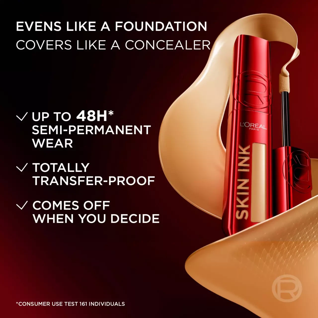 L'Oréal Paris Skin Ink 2 in 1 Foundation Concealer 15ml - 140 Light Warm is an ultra-lightweight hybrid base designed to work as both a foundation and concealer in one step for a smooth, even complexion. Its innovative “ink-like” fluid texture glides effortlessly onto the skin and blends quickly for a seamless finish. The shade 140 Light Warm is ideal for light skin tones with warm undertones, helping to enhance natural warmth while keeping the skin balanced and radiant. The highly pigmented formula offers buildable coverage, allowing you to customize from light to medium-full coverage depending on your needs. It effectively conceals dark circles, blemishes, redness, and uneven skin tone for a perfected look. The soft matte finish helps control shine while maintaining a natural skin-like appearance. It is designed for long-lasting wear, offering up to 48 hours of stay-put coverage without fading or transferring. � The waterproof and sweat-resistant formula ensures durability in heat, humidity, and daily wear conditions. � Its lightweight consistency feels breathable and comfortable, almost like a second skin. The formula sets quickly, so it blends best when applied in small sections for even results. It is suitable for normal, oily, and combination skin types, giving a smooth and refined finish. The flexible texture moves with facial expressions to prevent cracking or creasing. It works well for both all-over base application and targeted concealing. The compact 15ml packaging makes it travel-friendly and easy to carry for touch-ups. A perfect choice for achieving a flawless, natural-looking, and long-lasting complexion.