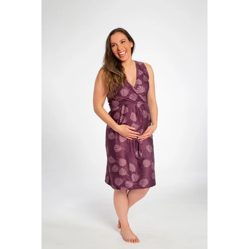 The Louisa dress is made from a very comfortable soft and stretchy jersey! It is perfect for a day at the office or for a more dressed up evening. * V-neckline; * For nursing, simply move the crossover; * A-Line fit; * Sleeveless; * Shoulder to hem length: 97 cm It can be worn during and after your pregnancy thanks to its cut and its soft and stretchy fabric. Our printed dresses are a unique product with a print specially designed by Véronique. They are designed with a soft and silky fabric made of polyester and spandex and printed in Montreal. FABRIC Polyester and spandex knit. CARE INSTRUCTIONS Wash in cold water and dry flat.