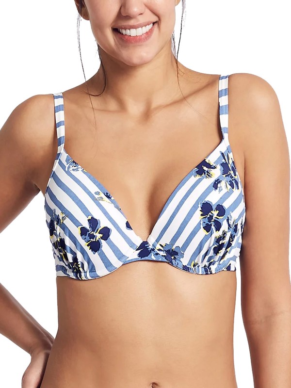 Flirty florals add a playful element to your relaxed beachside look. Padded cups give a smooth finish and enhance your curves. Wired with clasp fastening.