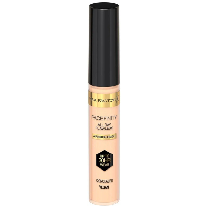 Max Factor Facefinity All Day Flawless Concealer - Shade 020 is a lightweight, long-wearing concealer designed to deliver smooth, natural-looking coverage while keeping the skin comfortable throughout the day. Its silky liquid texture glides easily onto the skin, allowing effortless blending without streaks or heaviness. The shade 020 is suitable for fair to light skin tones, helping to brighten and even out the complexion. It effectively conceals dark circles, blemishes, redness, and uneven skin tone for a more perfected appearance. Formulated with Flexi-hold technology, it moves with your skin to maintain a flexible, crease-resistant finish. The buildable coverage allows you to go from medium to full coverage depending on your needs. It provides a soft-focus effect that helps blur fine lines and imperfections for a smoother look. The lightweight formula feels breathable and comfortable, making it ideal for all-day wear. It sets nicely without feeling dry or cakey on the skin. The transfer-resistant finish helps keep makeup in place for longer hours. It blends seamlessly with foundation for an even, unified base. The precise applicator makes targeted application easy for under-eyes and small areas. Suitable for all skin types, it works well for both everyday use and special occasions. It helps create a fresh, brightened, and naturally flawless complexion. A reliable concealer for achieving smooth, long-lasting, and perfected skin.