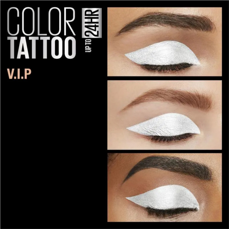 The Maybelline 24HR Color Tattoo Eyeshadow - 45 Infinite White is an iconic cream-gel eyeshadow in a versatile, vibrant white shade, known for its long-lasting, high-impact color payoff. Utilizing Maybelline's innovative "ink technology," the formula boasts up to 24-hour staying power with intense color saturation that resists fading, creasing, and smudging. The unique gel-cream consistency is ultra-smooth and seamlessly melts onto eyelids in one easy swipe, ensuring a flawless look all day and night. It has a silky, shimmering finish, which makes it a perfect, multi-use product: wear it alone for an icy, eye-brightening effect, use it as a base or primer to enhance other powder eyeshadows, or apply it to the inner corners for a striking highlight. The waterproof and smudge-resistant formula is designed to withstand humidity, sweat, and physical activity, making it a reliable choice for any occasion. Ophthalmologist and dermatologist tested, it is suitable for sensitive eyes and contact lens wearers, providing intense, durable color you can "set and forget". Reviewers often praise its smooth application, excellent coverage, and the fact that a little product goes a long way.