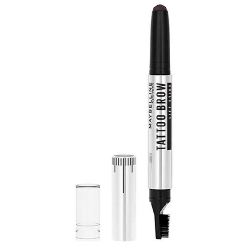 Maybelline Tattoo Brow Lift Stick in 05 Black Brown is your ultimate 2-in-1 tool for instantly lifted, fuller-looking brows with a natural matte finish. Featuring a dual-ended design, one side houses a tinted wax pencil that fills, defines, and shapes brows with rich black brown pigment, while the other end contains a lifting wax highlighter to accentuate the brow arch and create a lifted appearance. The pencil's angled tip allows for precise application, mimicking hair-like strokes with ease, while the creamy formula blends seamlessly into your natural brows for a defined yet soft look. The highlighter end adds a subtle glow under the brow bone, enhancing structure and brightness in seconds. Ideal for medium to dark hair tones, the Black Brown shade offers bold colour that stays true without looking harsh. This long-wear formula is smudge-proof and transfer-resistant, delivering all-day hold without flaking or fading. Easy to use and beginner-friendly, the stick format is perfect for quick touch-ups and makeup on the go. Whether you're shaping, lifting, or perfecting your brows, this stick does it all in one convenient swipe. Lightweight and comfortable, it enhances your natural beauty without the heaviness of traditional pomades or powders. Dermatologist- and ophthalmologist-tested, it's safe for sensitive skin and suitable for all brow types. Give your brows instant lift, shape, and definition with Maybelline Tattoo Brow Lift Stick in Black Brown.